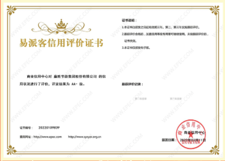 熱烈祝賀贏勝節(jié)能集團(tuán)股份有限公司在中國(guó)石化 EPEC 法人信用認(rèn)證中獲得雙 A 級(jí) (AA-),這是繼公司獲得中國(guó)石油能源一號(hào)網(wǎng)合格供應(yīng)商資格的又一榮譽(yù)。