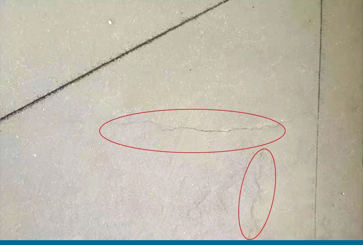 4、面層無(wú)明顯開裂,但混凝土面層出現(xiàn)很多細(xì)小的紋路,像烏龜殼上的紋狀,俗稱龜紋。